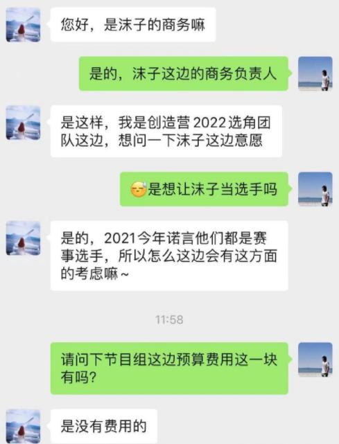 选秀节目自从2018年之后便持续长红不断,近年来也邀请了不少高人气网红参赛成为练习生,不少人更因此获得出道的机会,从网红转型成艺人。今年的《创造营2021》邻近决赛,沫子日前却自爆已经收到了《创造营2022》的节目邀请,她在自己的粉丝群里公开此事,并贴出了几张聊天纪录截图,看得出对方毫不拐弯抹角,直接询问她是否有出道意愿。