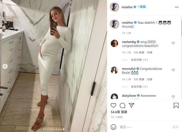 萝西杭亭顿最新在IG晒出10张在镜子前面的穿搭照,前9张都相当正常,直到滑到最后一张,她穿着贴身白洋装,肚子已经明显隆起超越胸部的高度,比起她纤细的四肢,肚子显得特别巨大。不过外国人没在怕,怀孕依旧穿上超高跟鞋。