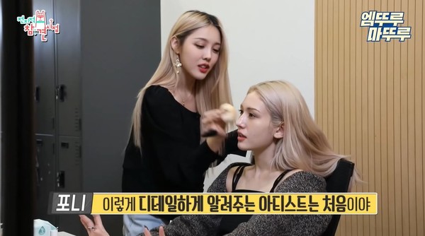 韩女歌手SOMI最近回归乐坛,上节目分析每个打歌的音乐节目都有自己的特色,尤其灯光部份各个不同,而一边说话、一边有化妆师帮她化妆,主持人惊呼造型师的美貌,原来她就是订阅超过580万的知名美女化妆师Pony!
