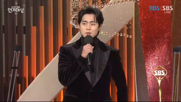 2021年最后一天,南韩SBS电视台正在举办2021演技大赏,第一个奖项颁奖人现身,是去年以《Stove League(金牌救援)》夺下最佳男子新人的赵炳圭,然而他今年卷入校园霸凌加害者疑云,消失近1年走过丑闻,他也当场透露了近况。而最佳男子新人有3人得奖,其中一位还穿军服现身。