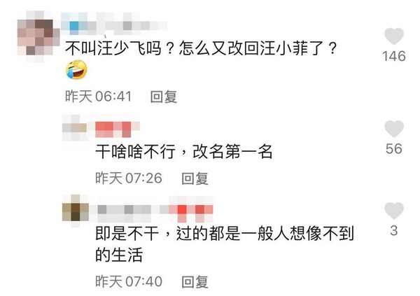 事实上,汪小菲在宣布与大S结束10年婚姻前,曾大动作将微博、抖音帐号改成本名汪少菲,当时透露我想起我原来的本名,离婚后被网友挖出两人参与《幸福三重奏》录制时,曾讨论到姓名一事,当时大S表示小菲比较好听,还掀起一阵讨论,而妈妈张兰在12月直播时,解释,本来儿子出生时就取名叫汪少菲,至于为什么这个时候才突然改过来?她笑说,就是要让他少飞。