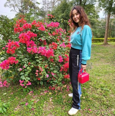 蔡依林11日晚间在Instagram上更新近况,简单写下6字踏青、看青、闻青,同时晒出一系列到郊外踏青的美照,只见她远离都市来到乡间,背后及地上都是绿油油的植物,站在一丛粉红色的花朵旁,虽然她脸蛋没有上任何妆容,但素颜的脸蛋依旧气色红润,加上一头棕色俏皮卷发,完全看不出真实年纪已经41岁。