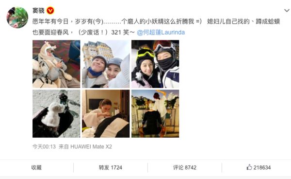 而窦骁的心情似乎未受评论影响,他9日凌晨准时为女友何超莲庆生,大方晒出甜蜜合照,昵称对方是磨人的小妖精,写下愿年年有今日,岁岁有(今)………个磨人的小妖精这么折腾我=) 媳妇儿自己找的、蹲成蛤蟆也要面迎春风,闪度爆表,不过当天《良辰好景知几何》正播完男女主角大婚的情节,也让部分剧迷表示瞬间出戏。