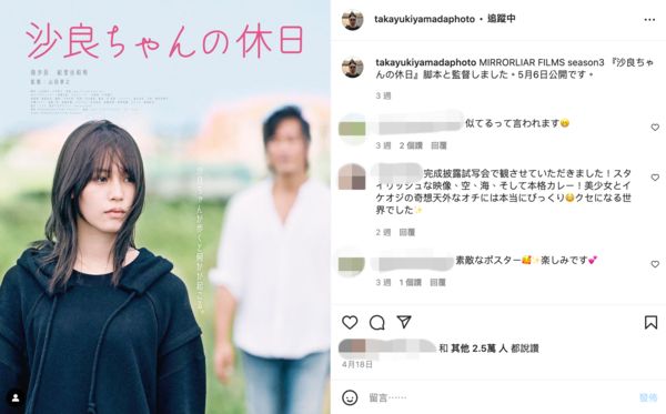 据日媒《女性自身》报导,山田孝之除了执导短片《沙良的休假日》,也是编剧之一,女主角是19岁新人女星南沙良,电影上映首日出席活动,说到因为是拍纪录片,密切关注着小南(指女主角)休假日,首先开拍的时候就不能被发现。基本上,以偷拍的方式进行,不能被发现,其实这段发言全是开玩笑的话,电影也不是纪录片,但致词时更说偷拍的感觉很好。同时他也透露拍摄有获得女方经纪公司允许,途中也经历许多困难。