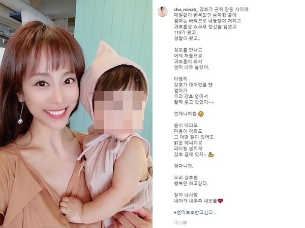贴文表面上是灿笑与儿子的合照,不过赵敏雅内文字句都在暗示自己遭严重家暴,最后hashtag写道:妈妈想被保护……,甚至在下方留言更加详细描述,昨天事情发生当下,自己被抓着脖子摔到地上,施暴者在119面前对她施作心肺复苏术,在没有外人的时候又对她恶言相向,形容自己每天都像活在地狱,拜托救救我。虽然未直接指名施暴者是谁,不过外界都猜测是她的丈夫,网友纷纷留言为她打气,也心疼地直说绝不要轻放这种人!