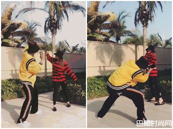 画面中,可以看到周扬青身穿红黑条纹的长版上衣,搭配黑裤展现纤细的腿部线条,罗志祥则是穿着宽松的黄上衣配黑裤,小俩口同步戴上黑色渔夫帽放闪,不只这样,两人一开始就牵手入镜,要男友帮她和树合照,男友比了OK后,立刻弯腰蹲马步帮她拍照,互动相当甜蜜有爱。