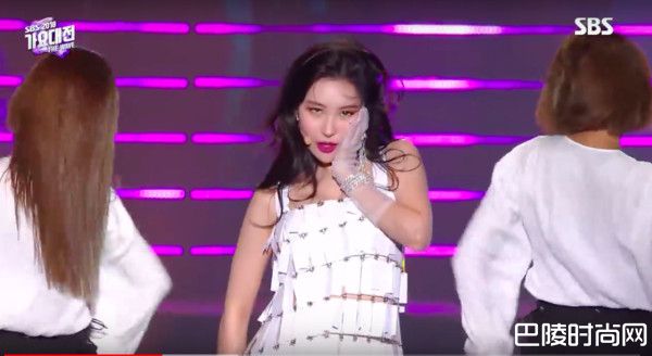 韩人气歌手善美2017年以一曲《Gashina》爆红后,洒脱又不失性感的表现受到观众喜爱,年末各种颁奖典礼登场,她也是受邀出席表演的热门歌手之一,每每都带来精彩演出。却在出演SBS歌谣大战时,她的服装意外走光,左边的平口往下滑,露出大半边bra,但她敬业度不减、完整演出整段表演,获得掌声。