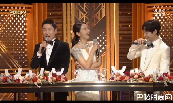 梁世宗和申惠善《虽已30但仍17》,从一开始的互相讨厌,到最后发现彼此纠缠的过去,最后终于有情人终成眷属,入围本届《SBS演技大赏》最佳情侣奖,主持人申东烨把麦克风递给台下梁世宗,问他台上的另一主持人申惠善,是否就是他的理想型?如果是的话,请手比爱心。