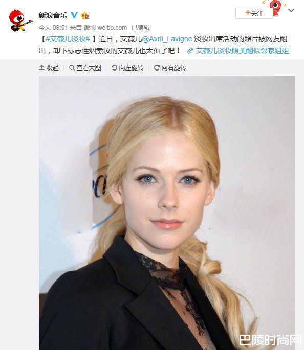 艾薇儿一出道便以摇滚风格爆红,招牌烟熏妆也带起模仿风潮,不过13年前她曾以淡妆出席时尚活动,卸掉浓厚眼妆,没有了叛逆气息,反而多了股仙气,搭配本身淡蓝色瞳孔,虽然已是旧照仍让网友惊艳不已,纷纷大赞:是仙女下凡吧!近日甚至登上微博热搜榜单。