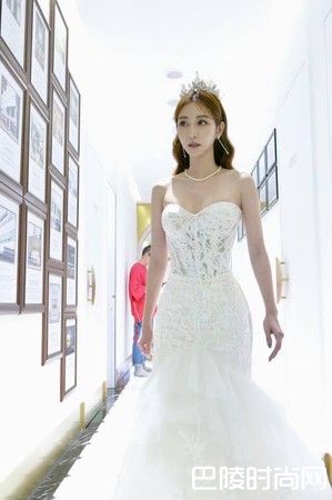 照片中,曾莞婷穿着低胸白纱,搭配项链、头冠点缀,散发出女神级的气势,加上连身婚纱的紧身设计,不仅突显前凸后翘的S型身材,傲人上围更是呼之欲出,辣翻众人。