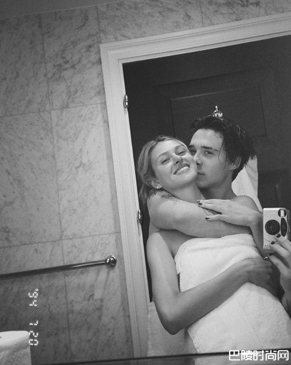 照片中,布鲁克林和妮可拉珮兹各自围着一条浴巾,甜蜜紧拥在一起,对着镜子自拍。布鲁克林情不自禁亲吻妮可拉珮兹脸颊,她也露出幸福洋溢表情,画面又养眼又甜蜜。