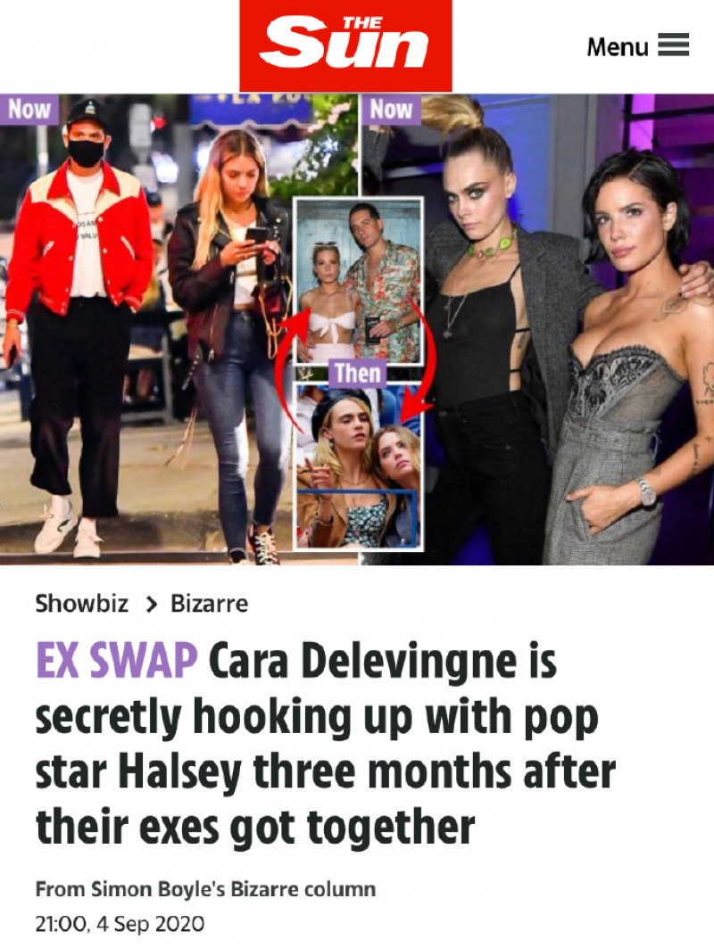 原本上个月卡拉被拍到与18岁星二代正妹名模Kaia Gerber公开亲密相拥一度引发新女友的谣言,没想到友人指出那只是Cara刻意逗着狗仔玩而故意摆出的亲密举动。而现在爆出与Cara真正在秘密交往居然就是Halsey!英国媒体报导指出英国超模Cara已经秘密与小3岁的美国女歌手Halsey交往了好几周,直到现在才被曝光。