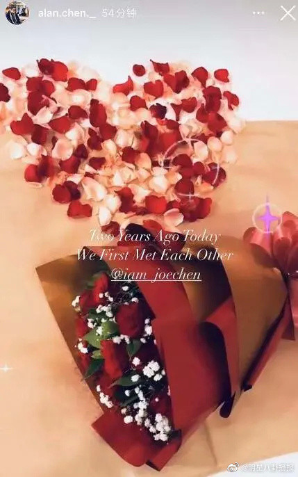 Alan日前在Instagram转发了网友替他和陈乔恩画的Q版手绘图,重现2人在节目初次相遇的场景,并大方标注女方帐号,纪念彼此相识2周年。同时,他也曝光了庆祝现场的照片,只见房内屋顶飘满红色及粉色气球,还特地准备了一束玫瑰花,更在一旁用花瓣摆出爱心图样,相当浪漫又用心。