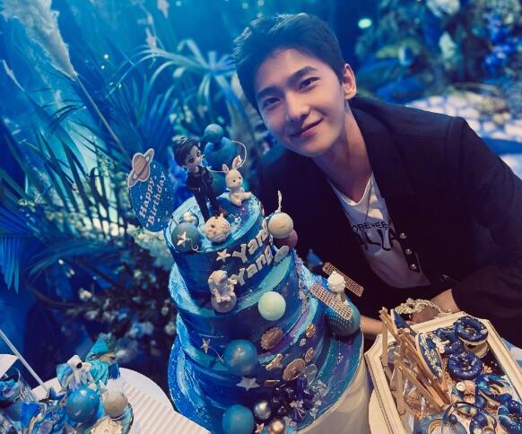 杨洋近年靠着《微微一笑很倾城》、《你是我的荣耀》圈粉无数,近期他与赵露思合作的古装剧《且试天下》也释出官方剧照,引发不少粉丝期待。他在9日刚迎来30岁生日的杨洋也在生日当天晒出庆生照片,整个场地都以深蓝色的太空主题设计,为了配合他在《你是我的荣耀》中饰演的航天设计师于途一角,蛋糕上还放了象征杨洋的羊以及于途的兔两种动物装饰,,场面梦幻又温馨。