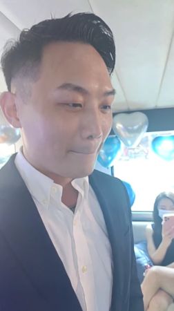 之所以被遮住双眼,Makiyo透露这是金先生的主意,一拆开黑布,映入眼帘的是一台游艇,她走着红毯入场,背景音乐还播出结婚进行曲,现场满是气球,男友站到她的身边下跪,公开求婚过程,她兴奋地对着镜头说我愿意,洋溢着幸福氛围。