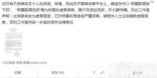 杨幂工作室微博声明