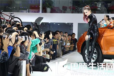 图二中,她换了一个姿势,这次是靠着一辆展车,身穿黑色乳胶装的她依然性感火辣,只见图片中许多摄像头投向着她,我想人们更关心的并不是车子有多好,而是车模有多美。正因为有了美丽的车模在车展中亮相,车展才有如此多的人来观看,这样也是一种推销手段。而杜奕霏并没有让大家失望,她那性感的身材足以震慑住在场的观众。