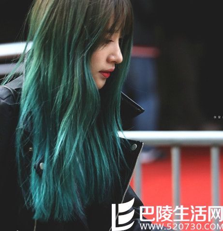 照片中的安希妍的头发从头顶是棕色的但是逐渐的颜色开始渐变了,逐渐变成了墨绿色,然后变成了深绿色,最后变成了荧光绿,简直就是美爆了,颜值真的是一件很重要的事情,这样时尚的发型真的是很配安希妍啊。看来只要颜值高什么样子的发型都能驾驭的了啊。