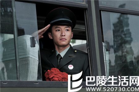 第一张照片是代旭拍摄解放军战士的剧照,只见他十分标准地敬礼,眼神抑郁,表示十分不舍的样子。