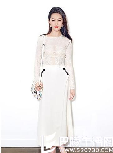 不知从什么时候开始,刘亦菲也喜欢走性感路线了,其中就很喜欢穿透视元素的礼服。白色蕾丝上衣打造朦胧的微透视效果,搭配白色长裙依然仙气四溢,性感也不失清新感。