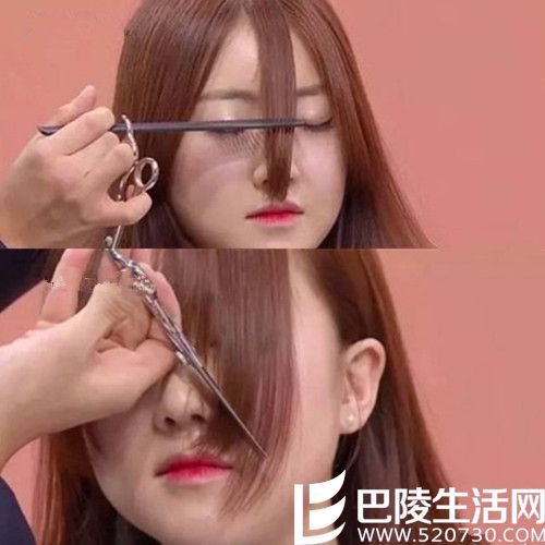 第二步就是给头发分叉,挑出一部分头发当作刘海,头发不要太多,要不然就没有空气感了,把头发挑到前面,然后分成三角形的样子,分好之后用大拇指捏着头发,顺着大拇指的轮廓剪下去。第三步就是两鬓了,两鬓就像图片中显示的一样,斜着剪,这样会有八字的形状,最后都搞好之后就用梳子梳顺或者用吹风机吹一下会有卷卷的效果,那样八字刘海会非常的好看。