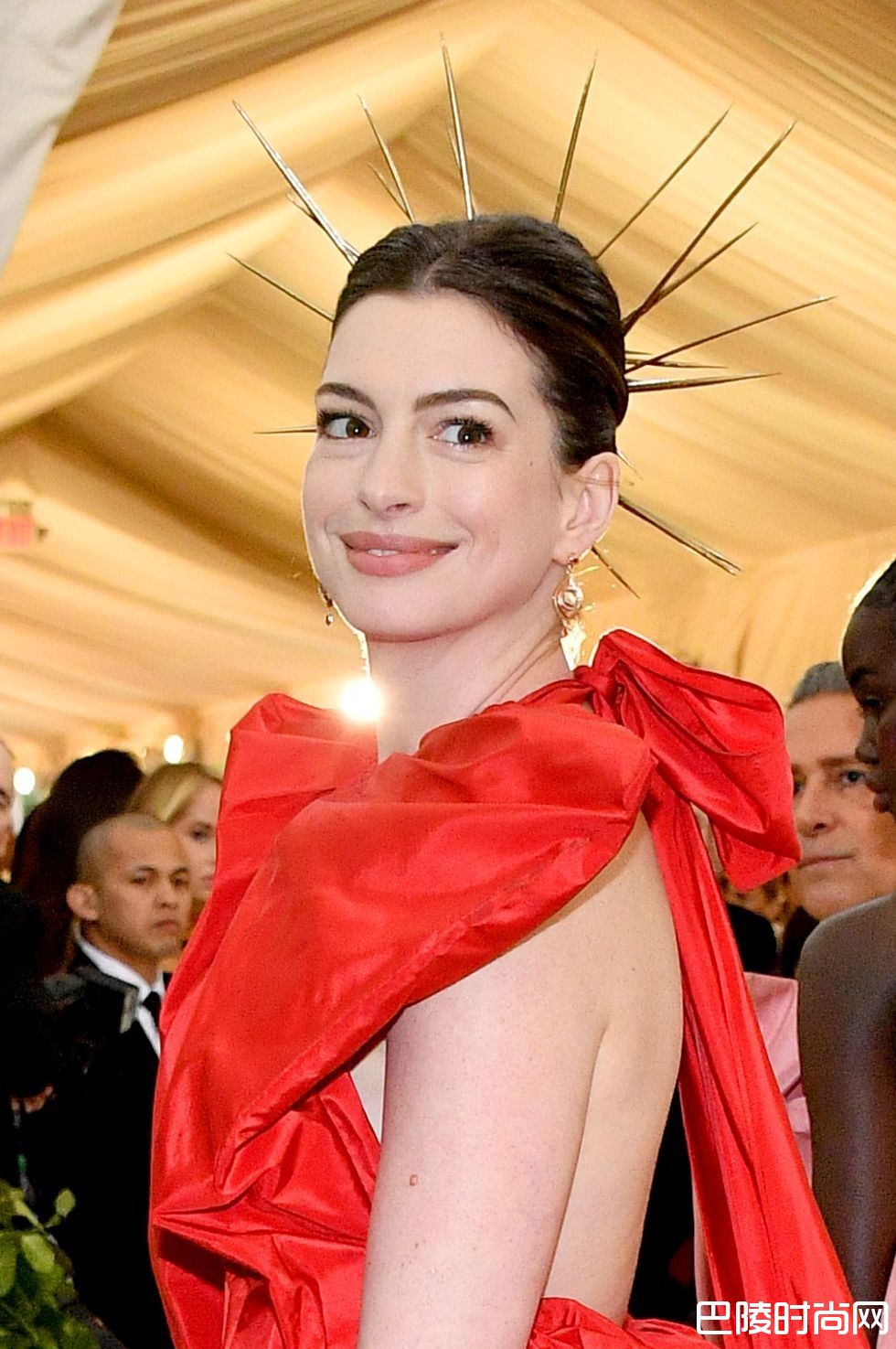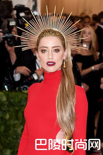 去年刚与巨星强尼戴普离婚的Amber Heard向来以性感闻名。这次在时尚殿堂选择一袭相对包紧紧的亮红挖背贴身礼服、头戴象征圣人光环的金属发饰亮眼现身。妆容上以橘、金色打造渐层眼妆,并搭配强烈的酒红色唇彩,将拥有好发质的及腰长发干净梳成马尾,将末段发丝染成金色并卷起收尾,优雅之下散发微微性感。