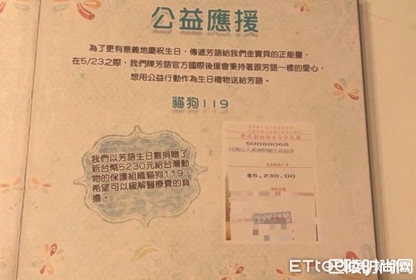 当时粉丝寄来的那本书,仿佛沙漠之泉,尤其看到粉丝以后援会名义,捐款给流浪动物之家,虽然金额不大,但这份帮她做善事的心意,瞬间暖上心头,也因此感动爆泪。事后回想起来,她再度笑着,却有些泛泪地说:他们(粉丝)太懂我了,这些远比花钱买礼物送我还实际很多,让我很感动!