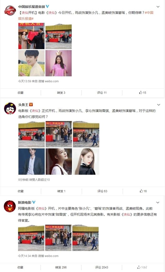 大陆传出拍电影版《诛仙》,17日网路上流传现场的开机照,据悉,片中主要角色张小凡由肖战饰演、碧瑶则由孟美岐出演,2人也都现身开机仪式。先前传闻李沁将饰演陆雪琪一角,但开机现场却未见其身影。
