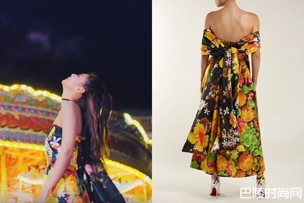 Jennie在MV中穿了不少有花瓣图案的洋装,黄色碎花看起来十分有朝气,相当符合她在旋转木马边翩翩起舞的模样。