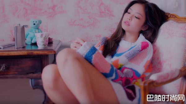 Jennie穿上色彩缤纷的Burberry毛衣,在粉红色的房间里更梦幻了。