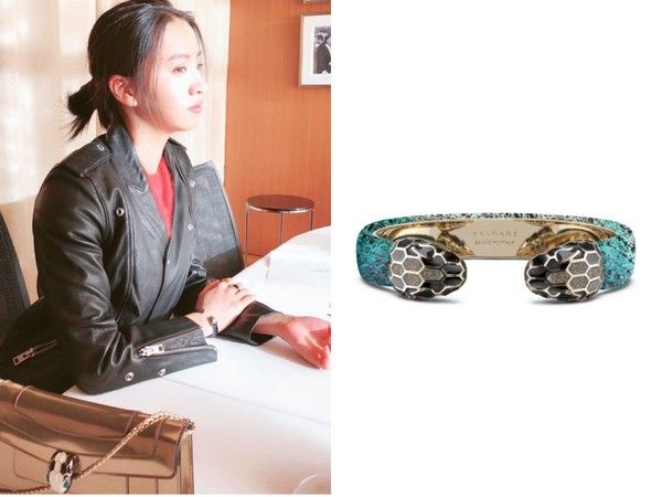BVLGARI招牌Serpenti系列将蛇的意象发挥地淋漓尽致,不仅有奢华的高级珠宝,亦有适合年轻女性的亲民设计,木村光希所戴的Serpenti Forever Mermaid 皇家蓝宝石色蟒蛇皮手镯,正是品牌的最佳入门,皮手环两端装饰珐琅蛇头,辨识度百分百;另有Serpenti Forever小牛皮手镯,以及一边是珐琅蛇头、另一端为爱心造型的Serpenti Forever Electro Love皮手镯,均备有多种颜色供选择。