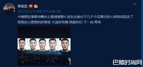 李荣浩27日在大连开唱,结束后却在微博哀怨发文,透露想在舞台上剧透《复仇者联盟4》,结果被台下几千位还没看过的歌迷骂,我现在心理憋得好难受!只是没想到在演唱会上想讨论剧情,被全场拒绝就算了,结果回家发文讨拍也一样没有好下场。
