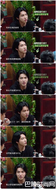 吴亦凡边咬着牛肉干,边有感而发地说,其实越靠近30岁,他心里的孤独感越强烈,而这样的感受也不由自主充斥在他的创作和周遭的所有事物中,我也不知道为什么、这可能也是为什么我之前征婚的原因吧。