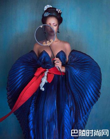 蕾哈娜为《时尚芭莎》拍摄封面,穿上唐朝风的服饰。