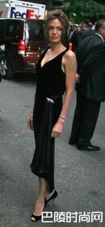 朱莉出席《无畏之心》首映会穿上这套简约黑色洋装,让她原本就纤细的身材变得更瘦了!胸口的低胸设计依然性感吸睛。