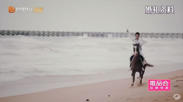 林志颖海边骑马重现婚礼。