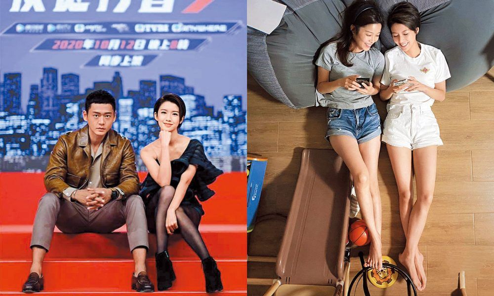 蔡思贝大晒与赖慰玲宅在家中玩电话的相片,相中两人都穿着热裤,大骚白滑美腿。