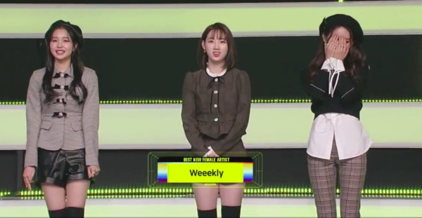 韩新人女团Weeekly(위클리,前称:FAVEGIRLS)由经纪公司Play M娱乐筹备10年打造,是女团Apink的第一组师妹团。她们继在MMA拿下最佳女子新人后,6日又再MAMA囊括第二座新人奖,成员们站上领奖台时也忍不住落泪。