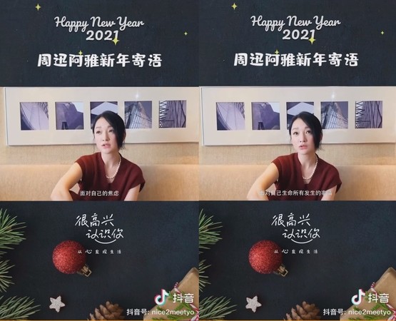 周迅和阿雅参加《很高兴认识你》,她在节目上分享2021年的新年寄望时,感慨地表示:我们都能认真的面对自己的焦虑,面对自己生命所有发生的事情,然后找到一个平衡的方式。她认为人生就是在不断地变化,要坦然面对一切,只要我们想要找到一条由心而发的一条路,它一定会形成自己的一套生活方式,去面对这样的生活和人生。