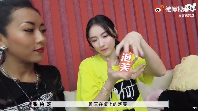 张柏芝参加节目《乘风破浪的姐姐2》后,累积了好人缘,在女星吉克隽逸的VLOG中大方接受采访,一开始对方马上吐槽她减肥方式与众人背道而驰,她总在白天的时候吃沙拉,还会跟其他人说我在减肥,怎料一到了晚上,就会开始吃一些高热量的食物,遭到好友爆料天天吃宵夜,都会煮两包螺丝粉加上两颗煎鸡蛋。