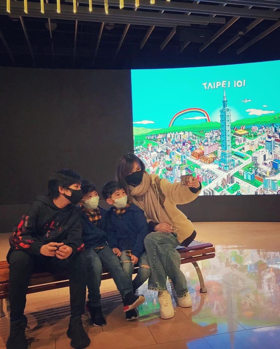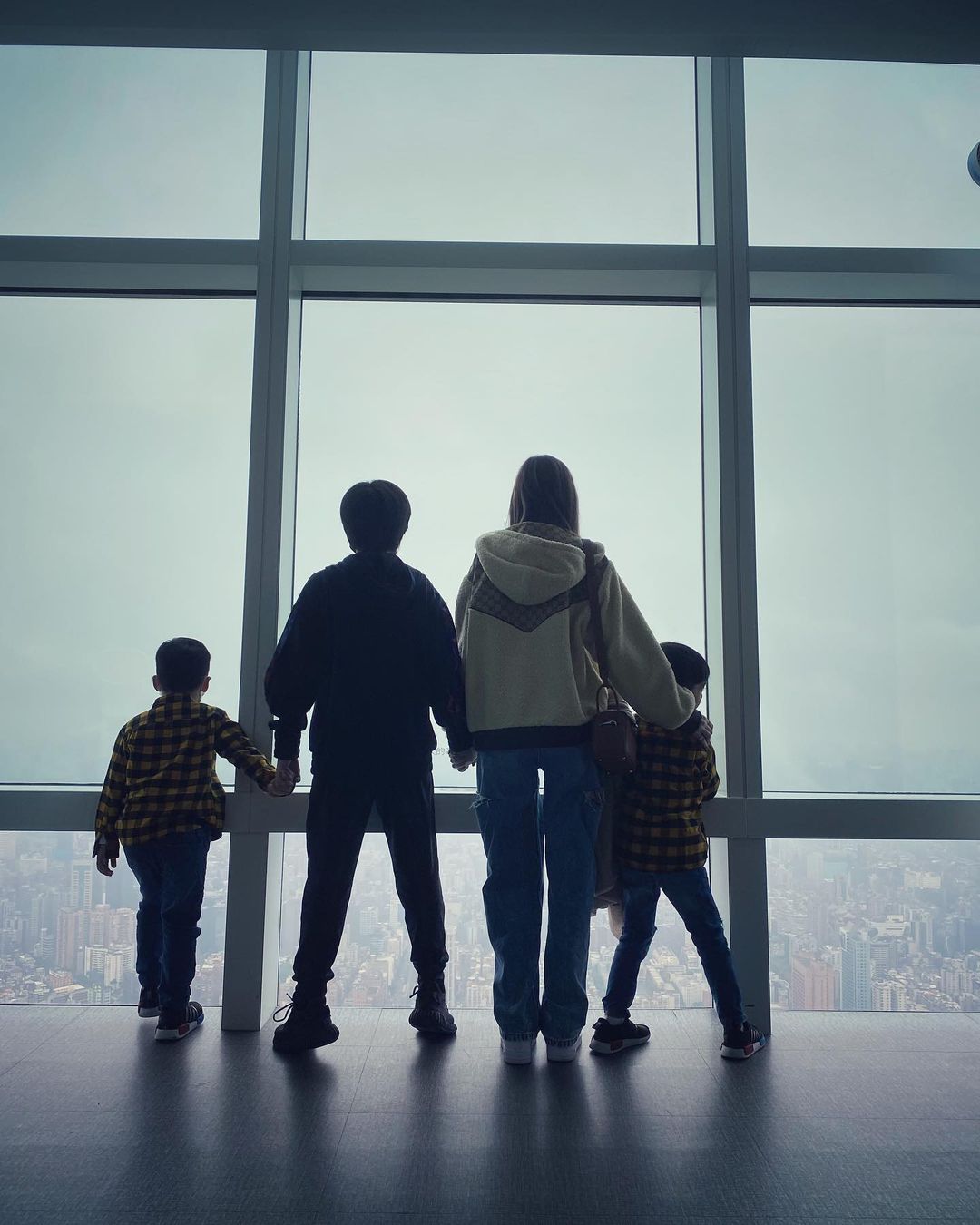 近日陈若仪在IG晒出与三个孩子一起到101大楼出游的照片,与儿子们一起排排站,今年已经11岁的Kimi身高已经跟174公分的妈妈差不多高,只矮了半颗头,让不少网友看了都十分感慨时间真的过得太快,粉丝们也留言表示:Kimi身高快赶上妈妈了、Kimi小大人了、长得好快、Kimi好高啊、哇3个小情人,都是帅哥。