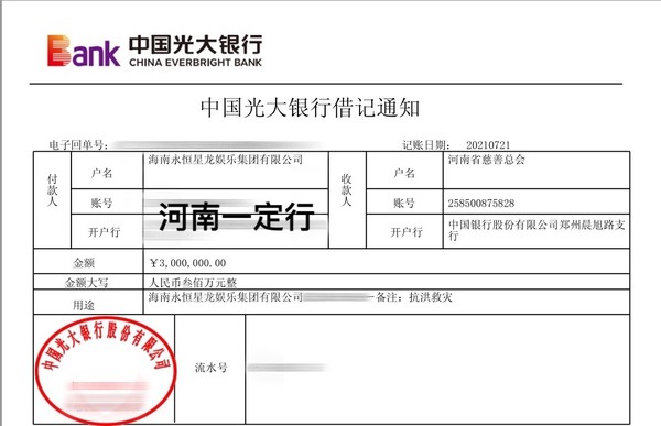 而黄子韬除了捐赠所有期下品牌衣服之外,他还透过所属的龙韬娱乐捐款,声明写下:黄子韬先生永恒星龙集团,代表集团全部艺人及员工捐款300万元驰援河南灾区,捐赠物资尚在统计安排中,河南一定行,盼平安。他本人则表示:一定会平安无事!虽然能做的事情并不多,但是隔着屏幕的我们也会尽最大的努力去帮助更多的人。