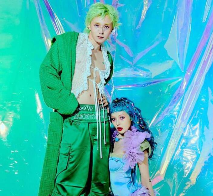 预计在9日回归的泫雅还有E'Dawn,除了上个月透过社群网站陆续公开MV幕后花絮之外,日前也晒出了一段预告影片,影片中两人的造型十分前卫,尺度也十分大胆,目前泫雅也一连释出多张两人在MV中的造型,多变的造型和发色都引起高度关注。