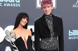机关枪凯利全身带刺超暗黑 带女友走告示牌音乐奖红毯