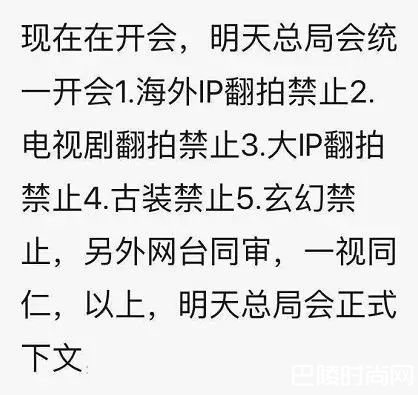 影视圈近年不断传出新禁令,年初限古令无预警升级,不允许武侠、玄幻、历史、神话、穿越、传记、宫斗等剧播出,随后又闪电解禁,在业界控制播出集数下,每个月仍就有古装剧播出。不过近日网路风传一张截图,透露未来禁翻拍剧,再度掀起骚动。