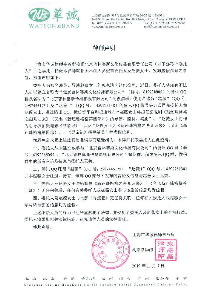 《还珠格格》新版翻拍进度受到外界高度关注,演员名单更是出现多种版本,现在还爆出众多诈骗讯息。赵薇甚至被传要担任新版电视剧导演,并且出现招募演员等谣言,为此她透过工作室发表正式声明,强调网上讯息都是不实传闻,将采取法律措施追究相关人员的法律责任。