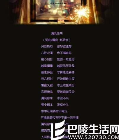 《清风徐来》的主歌部分王菲压低声线,以近乎呢喃的方式把对仗整齐的铺陈唱了出来,先抑后扬的转折点被安排在“清风徐来,水波不兴”,这是大众对王菲的既定印象的再一次发威:飘渺而不失真实的演唱,她标志性的鼻音在句尾的韵味十足,正好达到流行音乐极致的境界——形成洗脑的神奇功效。 《清风徐来》歌词中听出了徐峥和赵薇、杜鹃的感情端倪,并表示歌词意蕴深厚值得细品,“只要热烈,都好过温存”表达了爱要极致,不要细水长流的感情观念,“越是憧憬,越要风雨兼程”表明越有收获的爱情,就越应该经历磨练的态度。“要走多远,才算走进森林”又暗示了片中徐峥迷失在爱情里找不到方向的困惑,而“可能完美和完整,不是一回事情”则是释然与豁达,暗示了虽然人人渴望完美的爱情可完整的家庭同样重要,要把遗憾放下,学会珍惜眼前人。