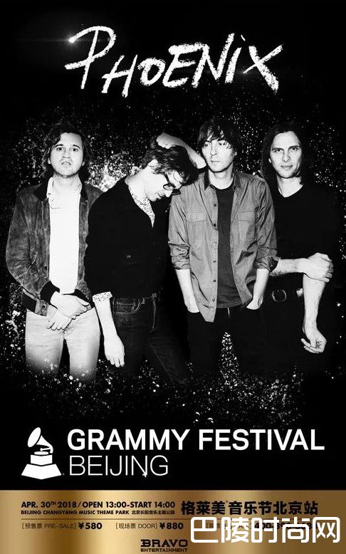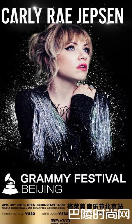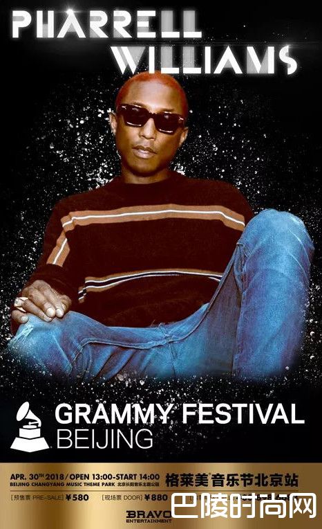 2018格莱美音乐节北京站门票价格:预售票580元、往返巴士票50元、现场票880元