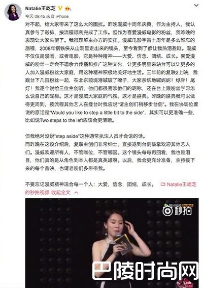 漫威宣发的事情日前愈演愈烈,漫威宣发主持人王屹芝红了,一句Would u mind step aside引众怒。王屹芝现场多次对电影主演们说不好意思,让一让。电影首映礼变身歌手演唱会专场,不少网友都在疯狂吐槽。