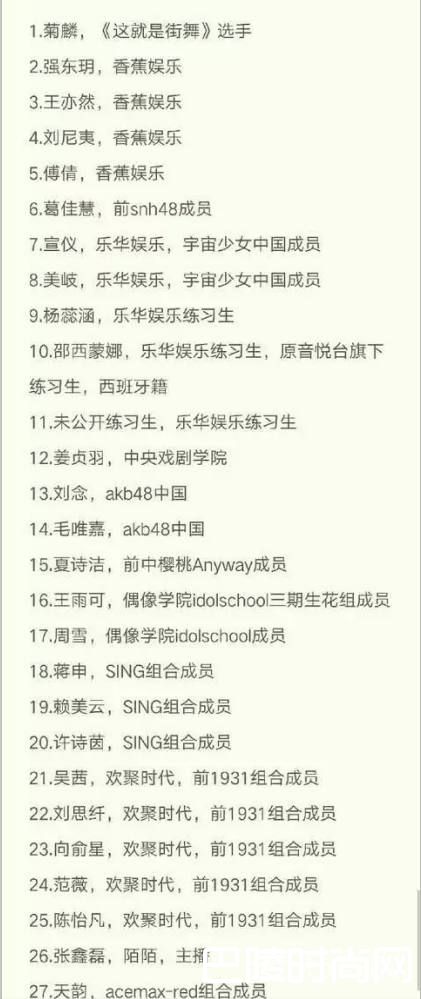 除此,各种女团成员几乎占了大半部分,蜜蜂少女队,AKB48中国组合,1931女子组合、MERA组合、kogirls组合等等。